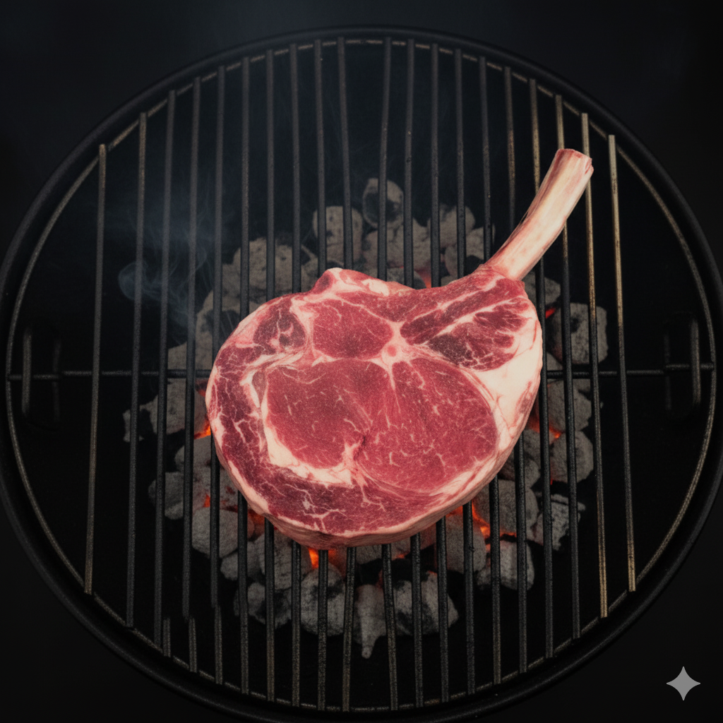 El corte "Cowboy" es un corte de res grueso con hueso que se extrae del chuletón o costillar, similar al Ribeye pero con un trozo de costilla más largo y visible. Se caracteriza por ser tierno, jugoso, con un excelente marmoleo y un sabor intenso. Se puede cocinar a la parrilla o al horno y se recomienda cocinarlo a término medio para apreciar mejor su sabor y jugosidad.