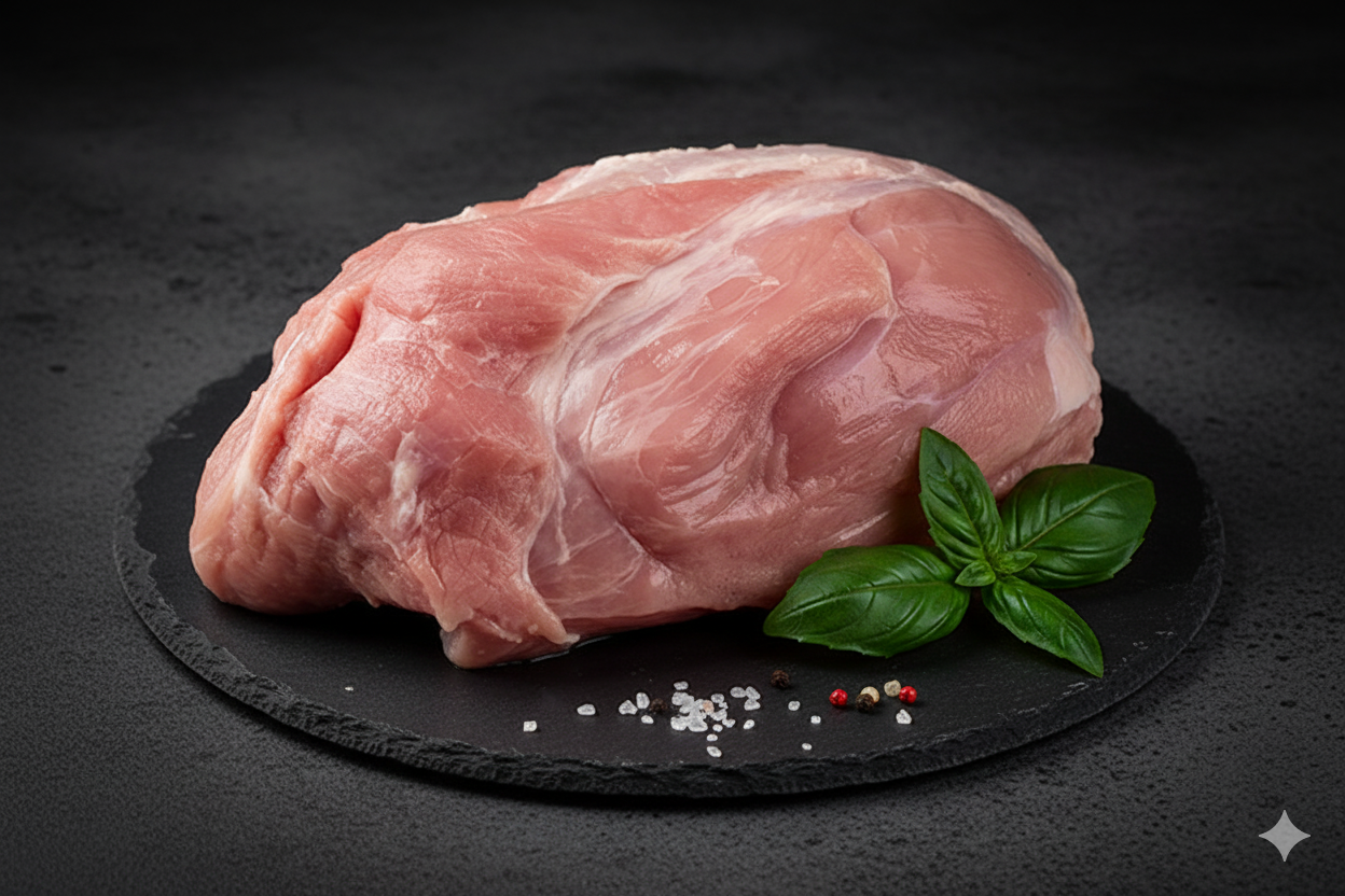 La pierna de cerdo es un corte grande y sabroso, ideal para hornear o asar, especialmente para comidas festivas. Se puede cocinar de diversas formas, con adobos, marinados o salsas, y puede ser con hueso o deshuesada.